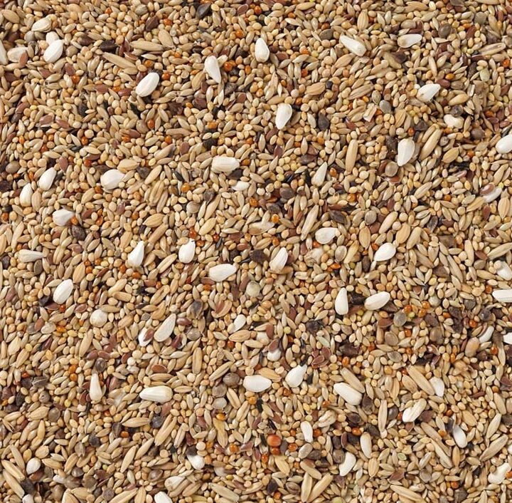 Samenstelling: Millet geel, witzaad, cardy, millet wit, millet Japans, kempzaad, millet rood, boekweit, nigerzaad, haver gepunt, lijnzaad, haver gepeld, paddy rijst