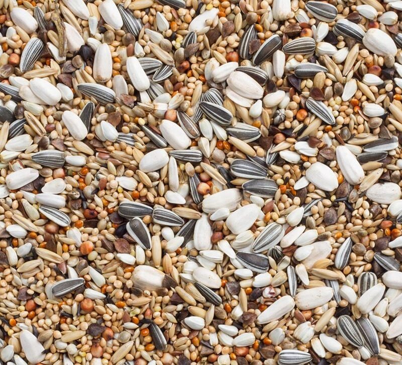 Samenstelling: Millet geel, witzaad, cardy, millet wit, zonnepitten gestreept, millet rood, boekweit, kempzaad, haver gepunt, sorgho rood, nigerzaad, zonnepitt en wit, haver gepeld, lijnzaad, paddy rijst
